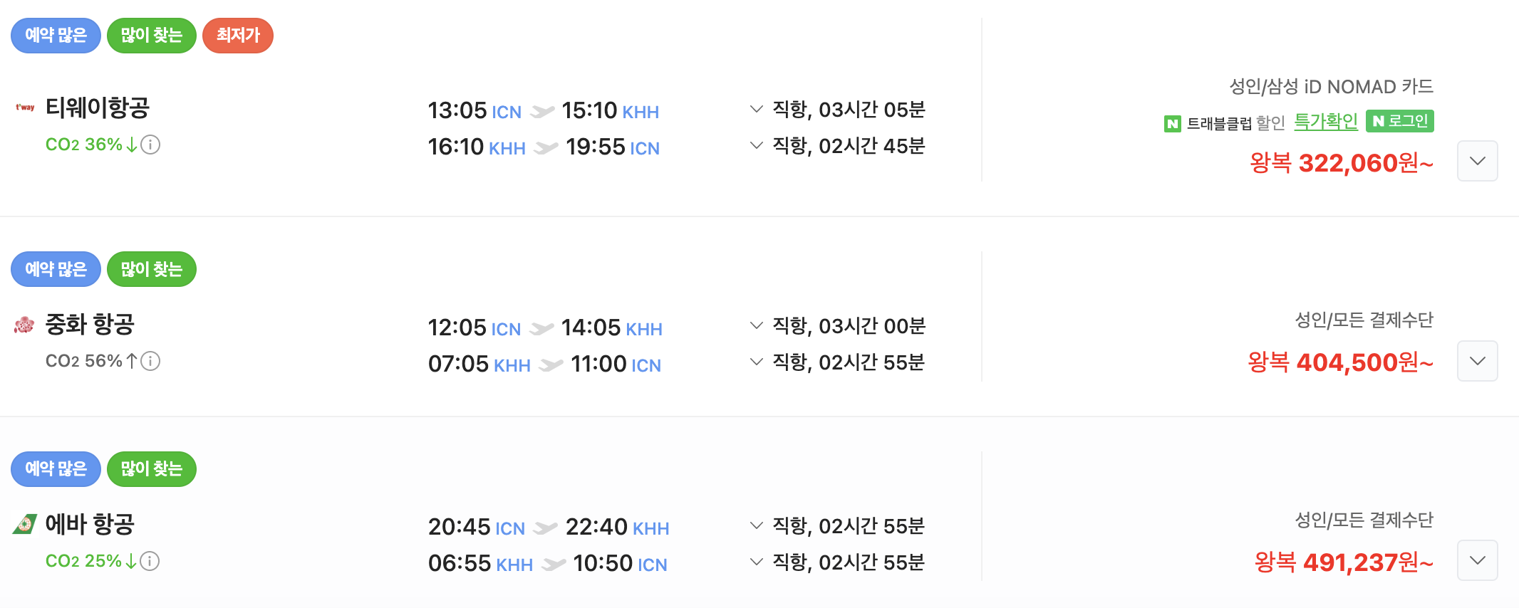 가오슝은 인천국제공항(ICN)에서 대만 가오슝국제공항(KHH)까지 직항으로 이동할 수 있습니다. 비행 시간은 약 3시간 30분에서 4시간 정도이며, 항공권 가격은 시즌과 항공사에 따라 다르지만 저가항공사 기준으로 대체로 30만 원에서 40만 원 사이입니다.
