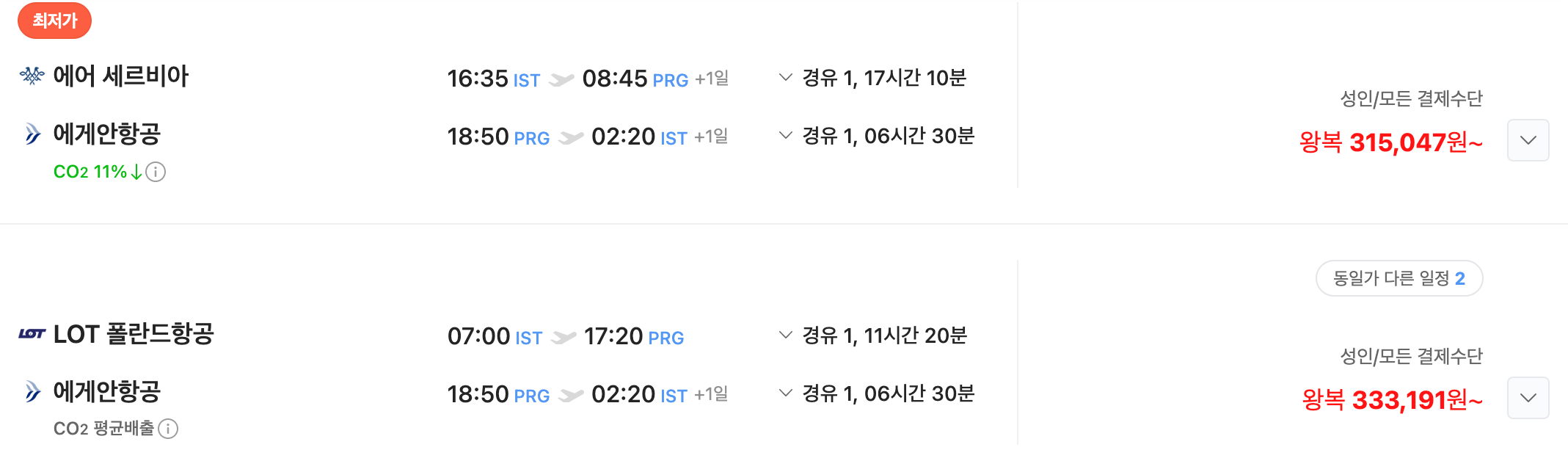 프라하는 이스탄불 국제공항(IST)에서 체코 프라하 바츨라프 하벨 국제공항(PRG)까지 직항으로 연결됩니다. 비행 시간은 약 2시간 30분에서 3시간 정도이며, 항공권 가격은 시즌과 예약 시점에 따라 다르지만 저가항공사 기준으로 대체로 12만 원에서 20만 원 사이입니다.